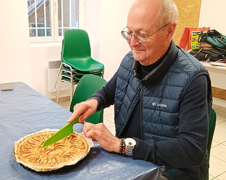 ![]() Pas très nombreux, certes, mais motivés : sérieux et concentration marquent cette journée, et c'est parfois un silence monastique qui s'installe ! Mais il y a aussi de nombreux échanges sur les arbres (quelle face choisir ? quelles branches sélectionner ? bois mort ou pas bois mort ? recréer une cime plus bas ou pas ? etc )... Pas de doute : on y voit plus clair à plusieurs, surtout quand les avis convergent. Taille, choix des charpentières, ligature, mise en forme... et même rempotage d'un petit cognassier qui se croit déjà au printemps : les arbres ont bien avancé ! ![]() ![]() (ci-dessus, à droite) Bonne surprise, au déjeuner, d'une tarte aux pommes réalisée par notre ami Frédéric. |