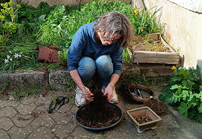 ![]() Nous restons à 4 pour l'après-midi, après un déjeuner pris dehors au soleil... L'installation d'un tuyau d'arrosage -idée et réalisation de notre hyper efficace secrétaire adjoint- permet de bien nettoyer les pains racinaires ! Beaucoup de rempotages effectués dans une ambiance très conviviale ! Une journée aussi agréable que productive ! |